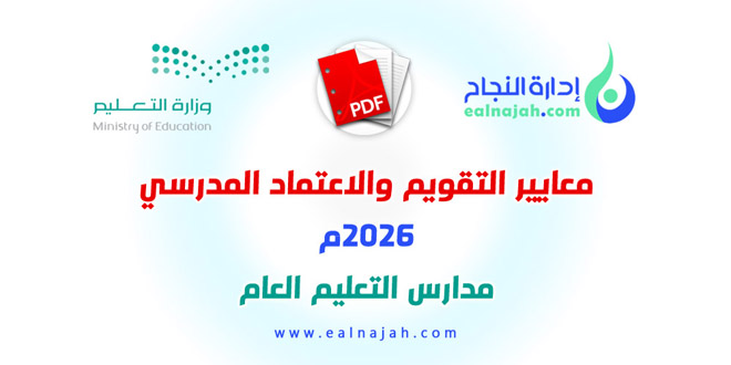 معايير التقويم والاعتماد المدرسي 2026م .. مدارس التعليم العام : المجالات، المعايير، أدوات التقويم، المؤشرات، إضاءات وإرشادات.