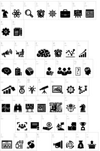 خط أيقونات إدارة الأعمال وتطوير الذات .. خط كتابة جميل يحتوي على أيقونات مفيدة في إدارة الأعمال والتجارة وفي تطوير الذات والدورات والتطبيقات.